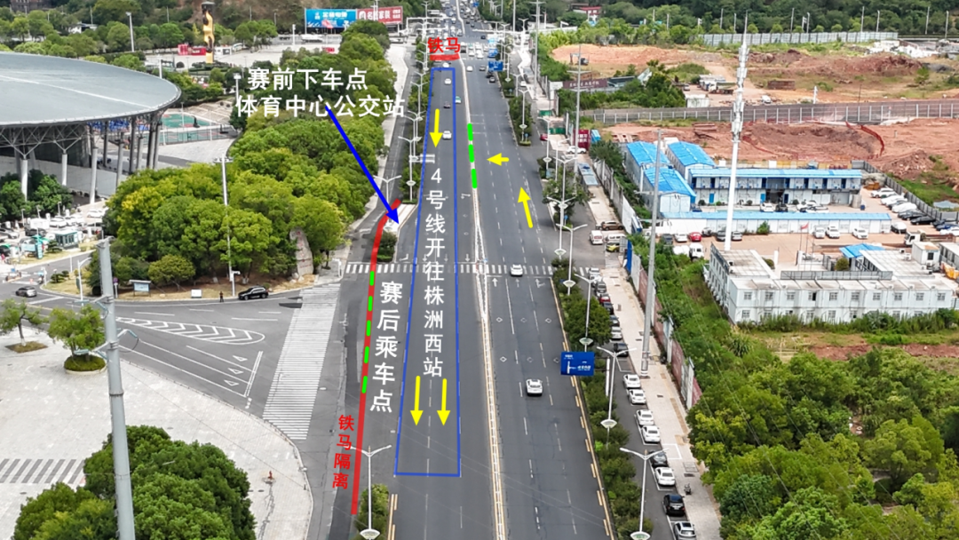 4号线:株洲西站→体育中心 行驶路线:株洲西站—炎帝大道—栗雨南路—高新大道—珠江北路—株洲大道—体育中心停靠站点:株洲西站、城发高新大厦站、株洲市第二中学站、株洲市二中东门站、井坡站、庙坡站、凼坡站、晚禾冲站、华晨·山水洲城站、高新大道黑龙江路口站、栗雨办事处站、高新大道珠江北路口站、馨香橄榄城站、大汉信息产业园站、体育中心