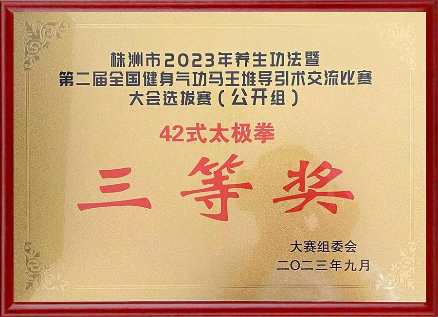第二届全国健身气功马王堆导引术交流比赛大会选拔赛( 公开组 )42式太极拳三等奖