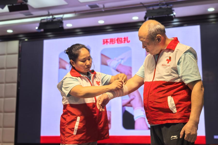 为确保培训质量,本次活动特邀株洲市红十字会“中国红十字总会资深高级救护培训师”周颜与吴新华联袂授课。其中,周颜老师拥有9年国家级急救培训经验,累计培育合格救护员超2万人;吴新华老师专注急救领域8年,尤其在CPR(心肺复苏)+AED(自动体外除颤器)专项培训方面具备丰富实操经验。两位专家采用理论讲解与模拟实操相结合的方式,系统传授了创伤救护关键技术与生命救援核心技能,内容涵盖创伤止血、包扎固定、骨折搬运及烧烫伤应急处理等实用技法,以及心搏骤停快速识别、高质量心肺复苏规范操作、自动体外除颤器使用及气道异物梗阻海姆立克急救法等关乎生命救援的重要技能。