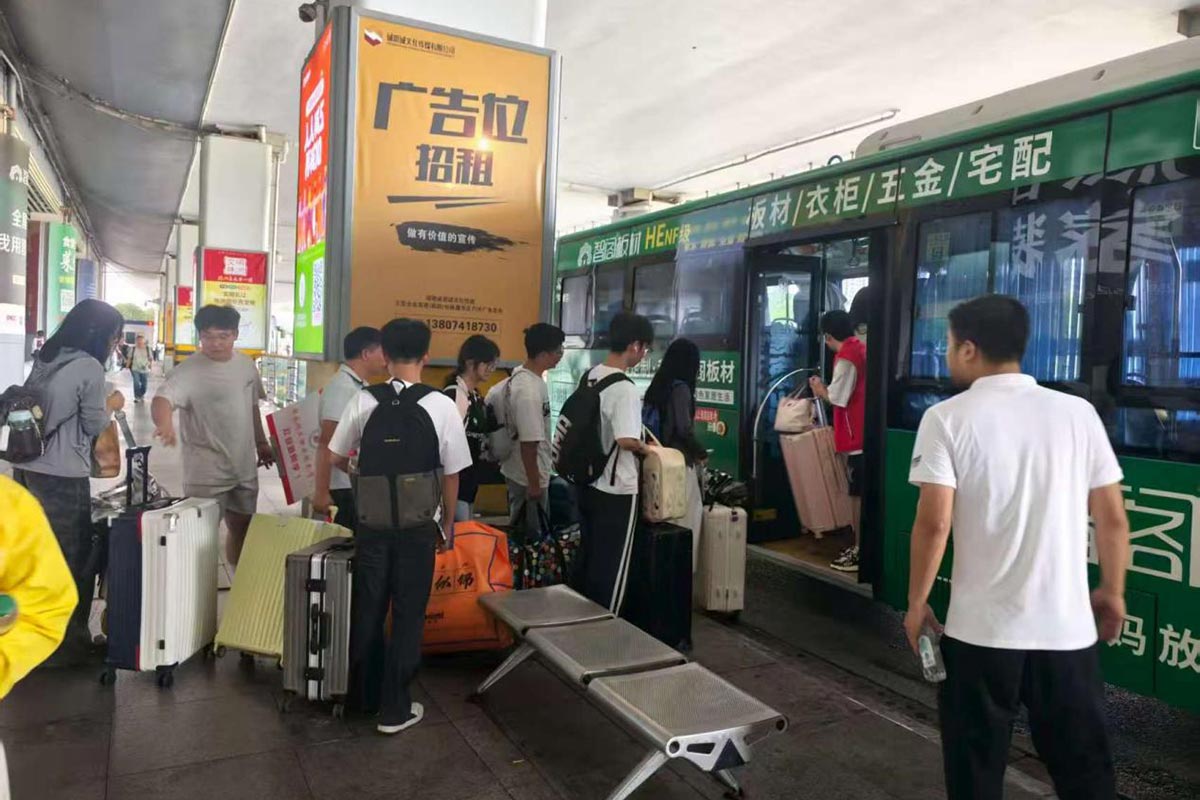 协同联动,秩序井然: 公司现场工作人员与校方老师、学生志愿者紧密协作,形成高效联动机制。通过清晰指引、有序疏导,引导新生及家长快速、安全登车,有效避免了站点拥堵和车辆延误,保障了接驳过程高效运转。