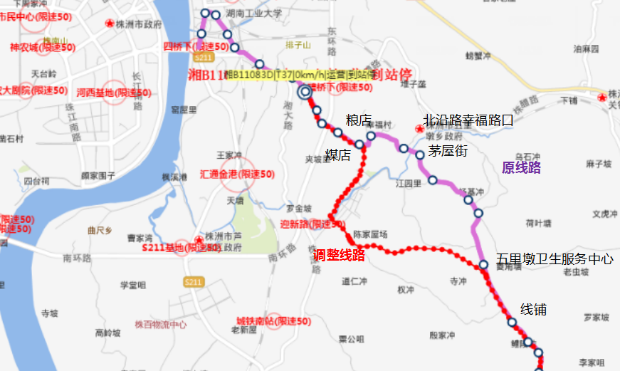 上行:五里墩卫生服务中心-千亿大道路口-关口-关口桥-毛屋村-茅屋街-北沿路幸福路口